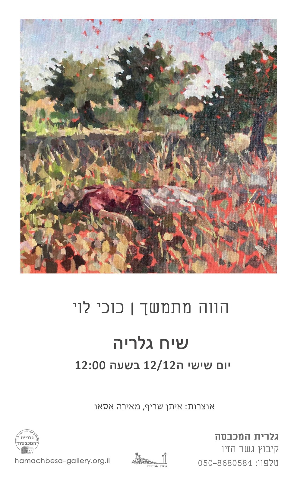 התערוכה מבקשת לחשוף את המתח בין הגוף לנוף, בין האישי לקולקטיבי, בין האידיליה להרס ובין החורבן להתעקשות על החיים. הציורים השקטים במבט ראשון הופכים לעדות חיה של תקופה רועשת מלאה בכאב וסטירות.