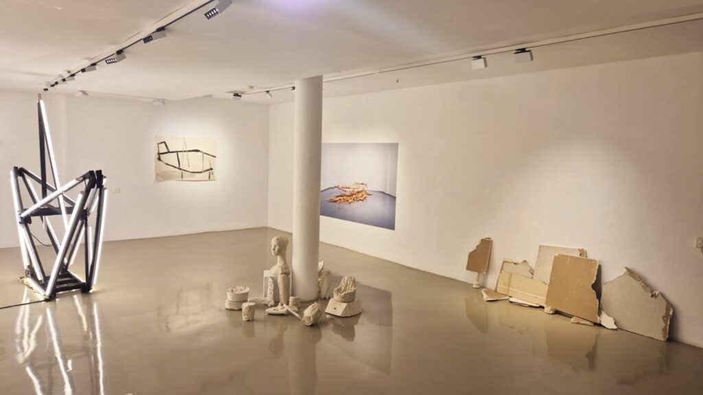 העבודות מבקשות מהלך של הפשטה של פעולות פירוק והתרסקות, שבו דימויים כגון סירה המתנפצת על שרטון נבחנים כחומר חזותי טעון, הנושא משמעויות משלו. התערוכה מבקשת לחבר בין פנים וחוץ של הגלריה, וליצור מרחב שמגיב לעולם סוער ובלתי יציב. בתערוכה עבודות פיסול, הדפס, הקרנות וידאו וציור.